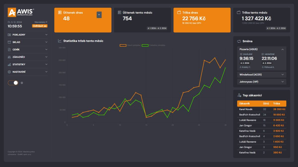 Centrální pokladna AWIS je síťové pokladní řešení pro více prodejních provozů, ať už se jedná o síť obchodů, restaurací, hotelů, pobočky, obchodní řetězce a supermarkety. Tedy pro všechny typy podnikání, které pracují s více platebními terminály.
